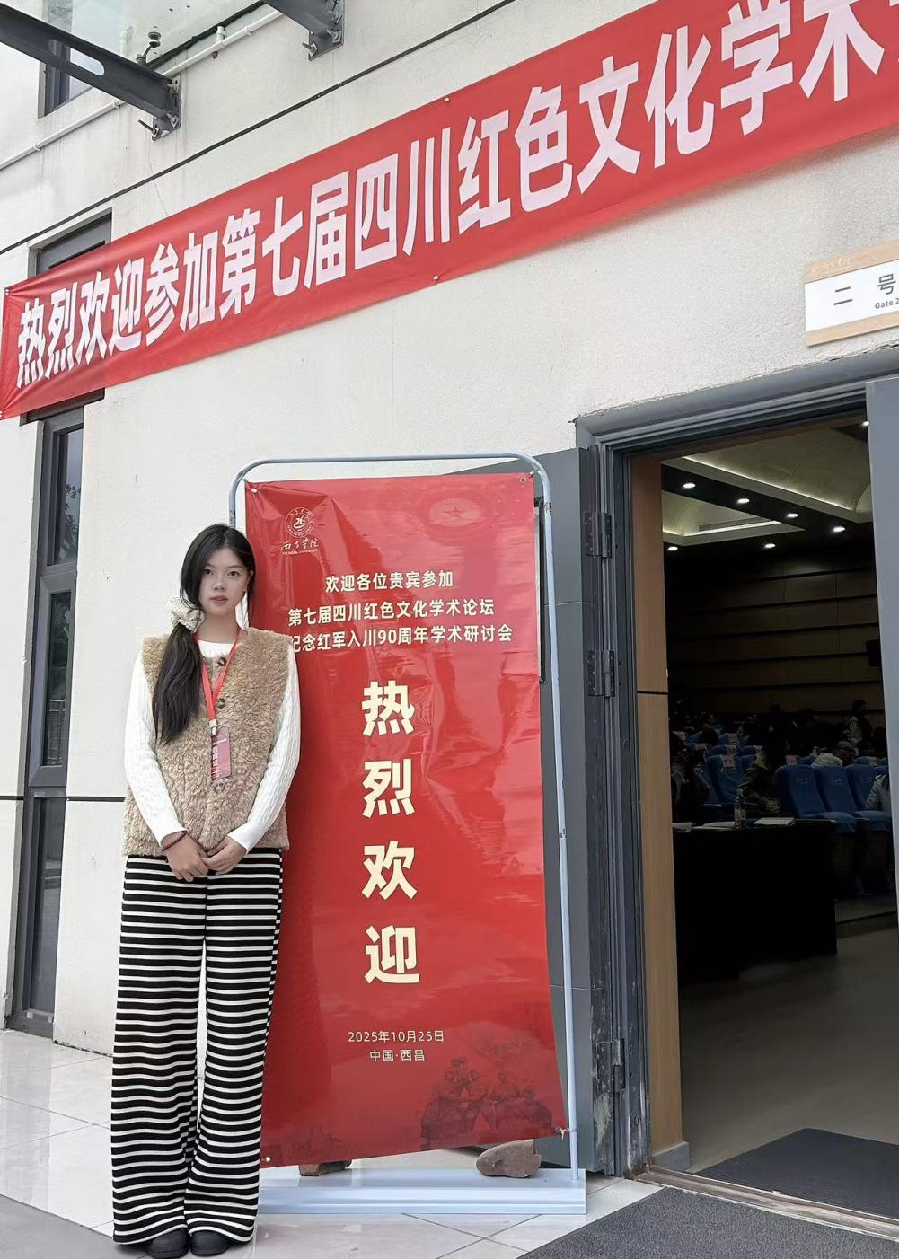 2025年10月24—26日由四川旅游学院与西昌学院联合主办的第七届四川红色文化学术论坛暨纪念红军入川90周年学术研讨会在西昌成功举办。来自中国人民解放军军事科学院、中国人民解放军国防大学、山东师范大学、河北师范大学、郑州大学、首都师范大学、哈尔滨理工大学、河北大学、湖南大学、中共凉山州委党校、中共四川省委党校、中共四川省委党史研究室、绵阳市政协研究室、西昌学院等120余名专家学者参加了会议。我院2023级马克思主义理论研究生邓雨欣受邀参加此次会议。
