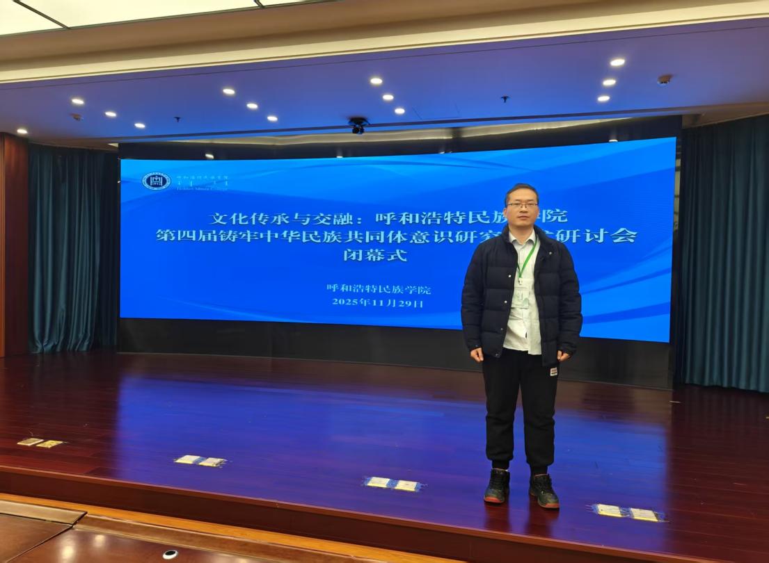 11月29日,“文化传承与交融:呼和浩特民族学院第四届铸牢中华民族共同体意识研究学术研究会”在内蒙古呼和浩特民族学院召开。我院教师李扬扬应邀参加此次会议。本次会议由呼和浩特民族学院铸牢中华民族共同体意识研究基地、呼和浩特民族学院蒙古族非物质文化遗产研究基地、呼和浩特民族学院北疆文化传播实践中心联合举办。汇聚了来自民族团结杂志社、中国传媒大学、云南大学、中央民族大学、北京外国语大学、青海大学、西北民族大学、西南民族大学、中南民族大学、青海民族大学、西华大学等20余个省市自治区的高校及科研机构的逾百位专家学者,齐聚一堂,共赴思想盛宴,拓宽学术视野。