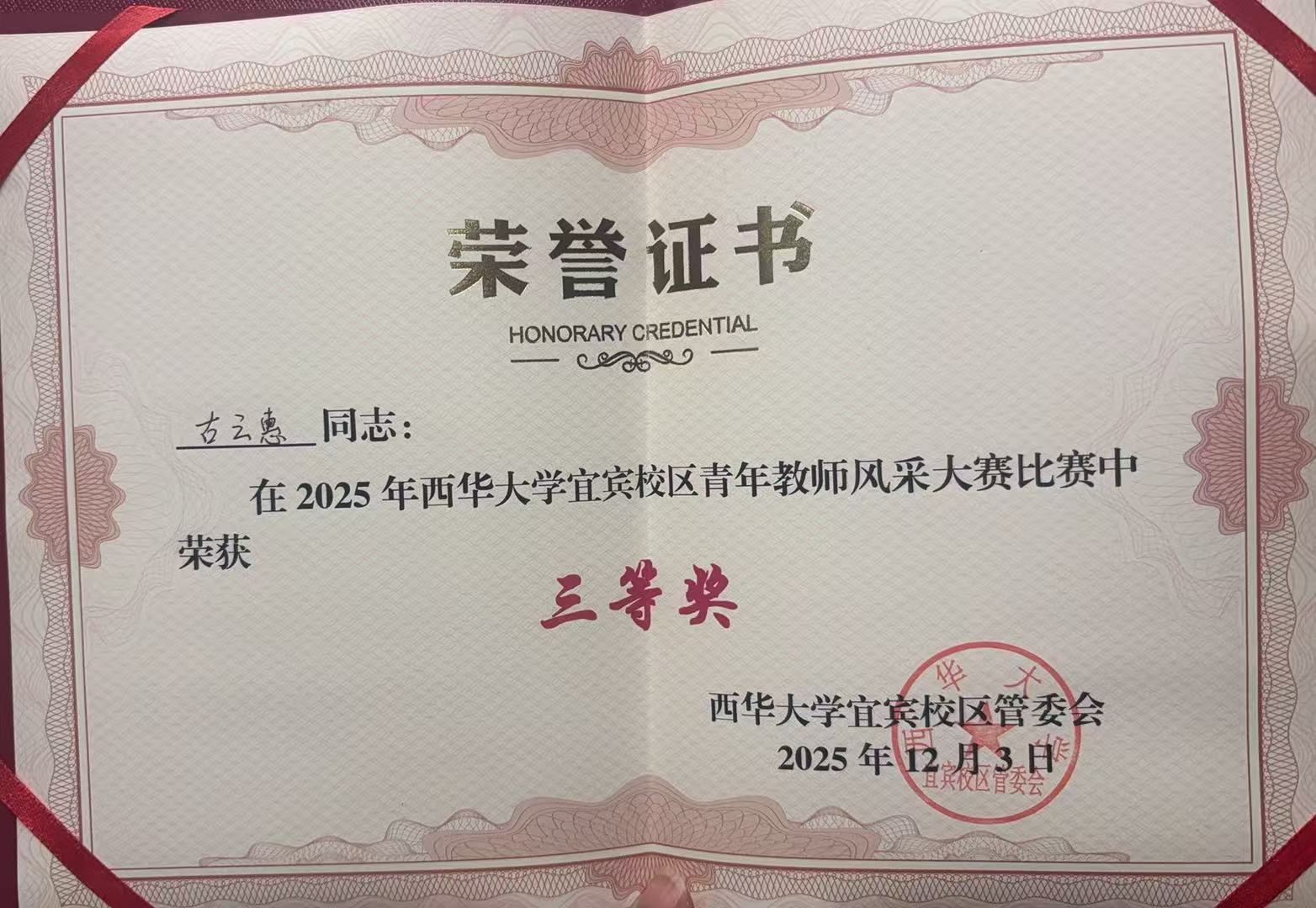 12月3日,西华大学宜宾校区2025年度青年教师风采大赛圆满落幕。我院青年教师凭借扎实的专业知识、充实的授课内容与生动的表达形式,在众多参赛选手中脱颖而出,荣获佳绩。
