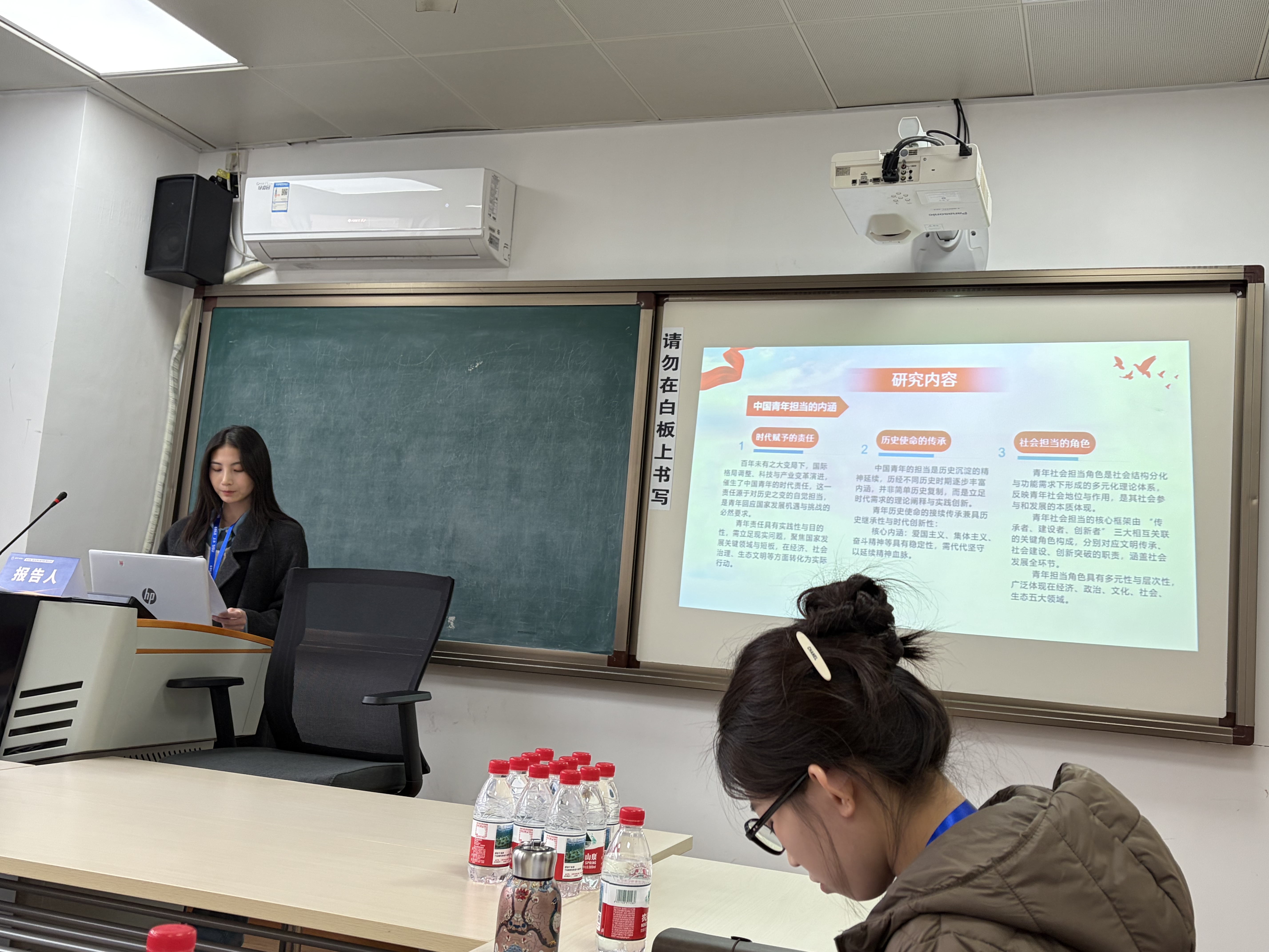 下午分为青年圆桌对话+分论坛研讨,围绕“历史中国与当代中国的青年阐释”“数字人文与世界中国学研究”“跨学科视角下的世界中国学相关问题解析”“文明互鉴视野中的世界中国学研究”“世界中国学学术共同体的青年建构”“历史中国与当代中国的贯通路径”等展开专题研讨。我院2024级研究生胡元雨撰写《中国式现代化进程中青年的担当意识及其培育研究》一文,并在专题论坛5:历史中国与当代中国的青年阐释进行交流发言。