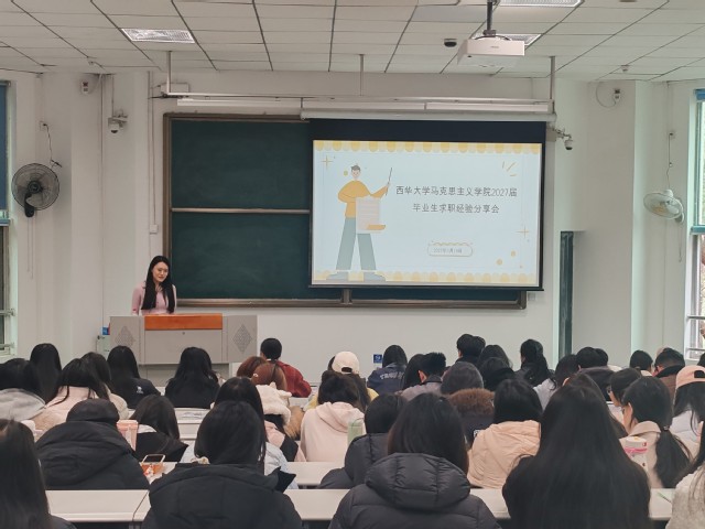 为进一步提升学院毕业生的求职竞争力,帮助学生科学规划职业方向、掌握实用求职技巧,3月19日下午14:30,马克思主义学院在4A202教室成功举办“毕业生求职经验分享会”。本次活动特邀资深HR、校招社招面试官王腾浩担任主讲嘉宾,学院全体毕业生到场参加。活动由学院团委书记钟兴悦主持。
