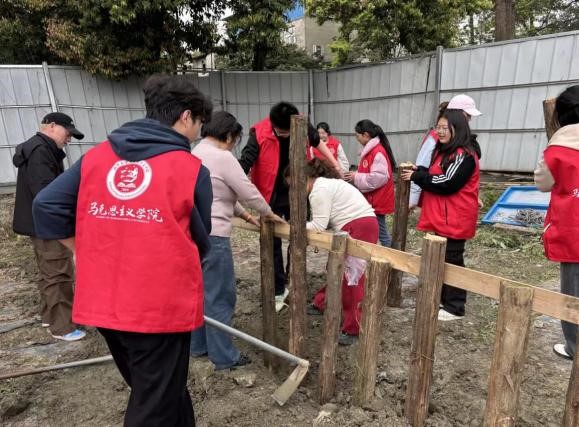 为弘扬新时代雷锋精神,践行绿色发展理念,助力社区环境美化,2026年3月19日下午,学院2025级、2024级思想政治教育专业的团员们走进仁合社区,与社区工作人员共同开展了“枯木围新篱,志愿暖邻心”主题志愿活动。活动旨在利用社区内的废弃木材,通过志愿劳动为社区公共空间进行微改造,以务实行动传递邻里温情。