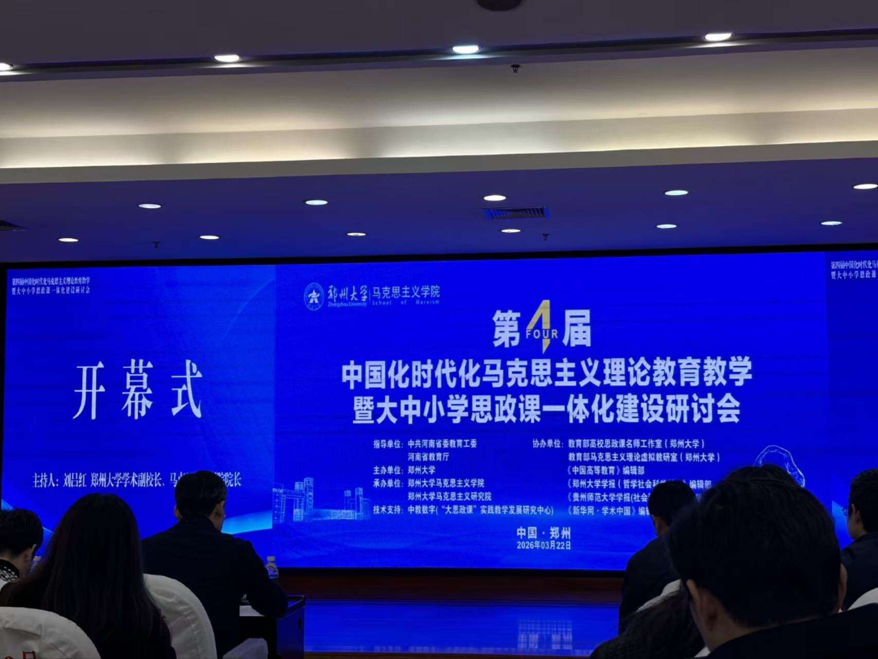 3月22日,由郑州大学马克思主义学院主办的第四届中国化时代化马克思主义理论教育教学暨大中小学思政课一体化建设研讨会在郑州隆重召开。来自华南理工大学、厦门大学、海南大学、吉林大学、华东师范大学、安徽大学、陕西师范大学、西华大学等省内外多所高校的专家学者、青年教师及硕博研究生齐聚一堂,共探新时代思政教育创新发展路径。