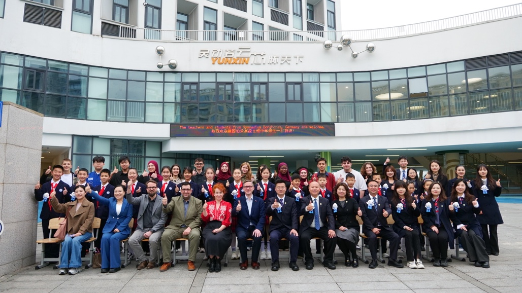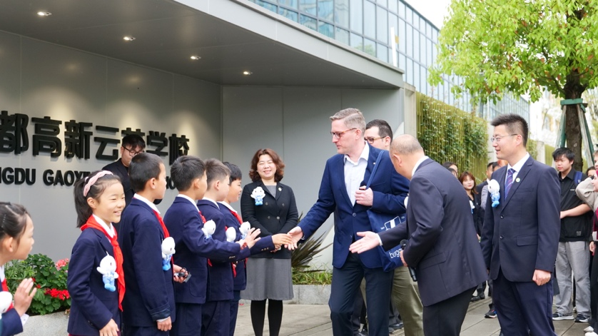 2026年4月2日,学习强国以《青春牵手 文明互鉴——中德师生成都携手践行人类命运共同体理念》为题报道了德国名校伯乐高级文理中学师生代表团到访成都高新云芯学校,双方开展校园探访、文化展示、课程体验、体育互动、企业参访等交流活动。此次中德师生相聚云芯,以文化为桥、以交流为媒相知相融,是两国师生践行文明交流互鉴理念、推动构建人类命运共同体的具体实践,为中德教育交流、民心相通写下鲜活注脚。