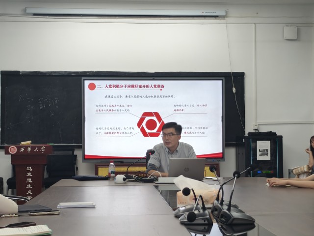 石元鹏在随后的专题党课中,以“端正入党动机,争取早日入党”为主题,结合党史与现实案例,深入浅出地阐述了树立正确入党动机的重要性。他强调,入党不是一时冲动,而是终身信仰的追求;不是功利选择,而是思想与行动的双重锤炼。他鼓励同学们要坚定理想信念,增强党性修养,在学习、工作和生活中发挥先锋模范作用,真正做到“组织入党一生一次,思想入党一生一世”。作为马克思主义学院的学生,更应在理论学习和实践锻炼中走在前列,既要成为党的创新理论的坚定信仰者,也要做积极传播者和忠实践行者。