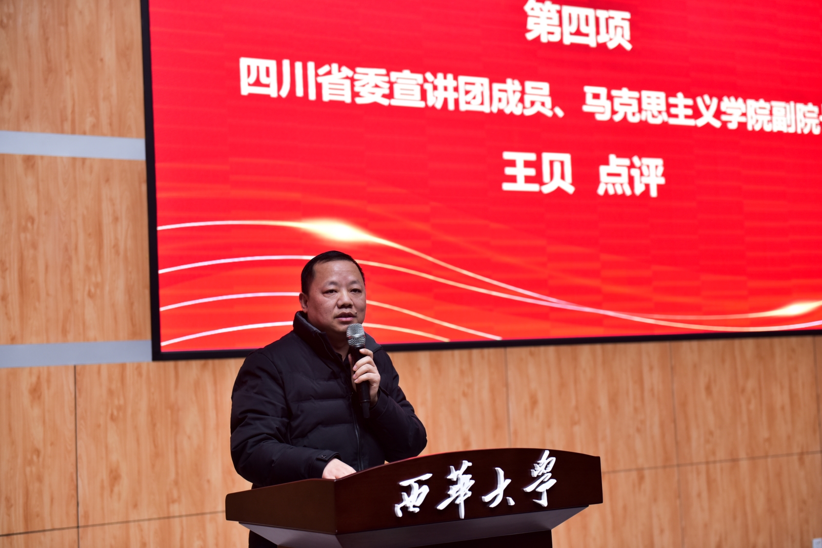 “选手们准备充分、主题鲜明、表达流畅……”全部选手宣讲结束后,四川省委宣讲团成员、马克思主义学院副院长王贝对选手表现进行了现场点评。