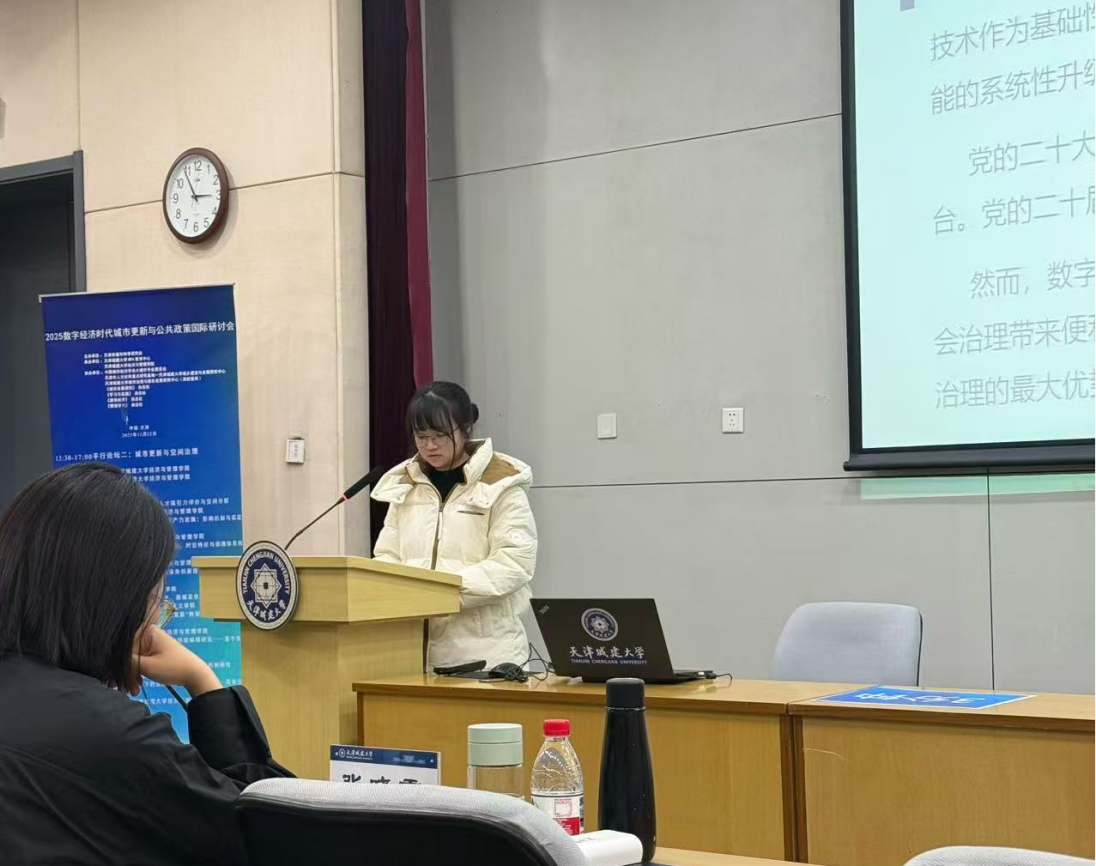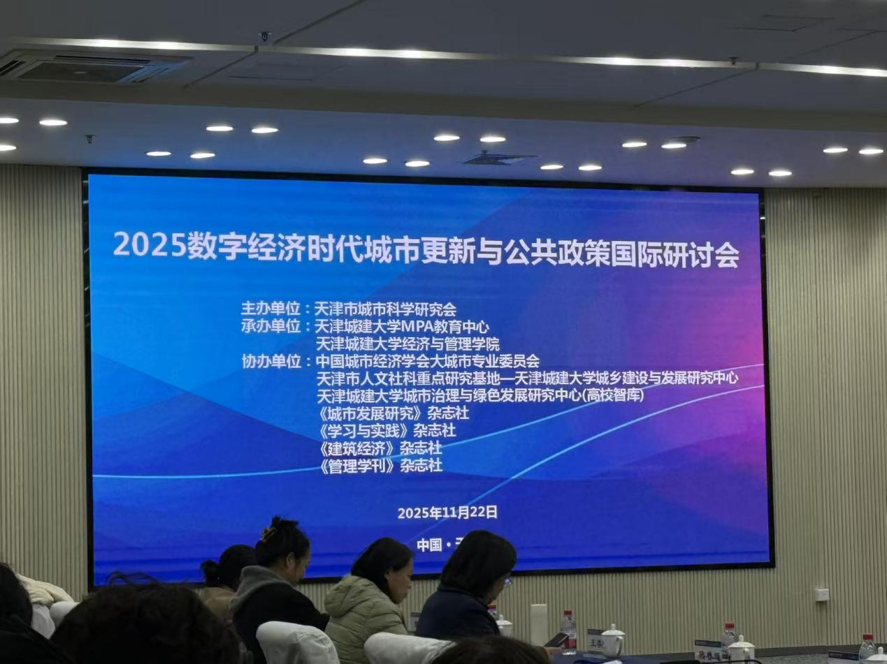 2025年11月22日,由天津市城市科学研究会主办、天津城建大学承办的“2025数字经济时代城市更新与公共政策”国际研讨会成功举行,我院2024级马克思主义理论专业研究生罗瑞雪受邀参加此次研讨会。