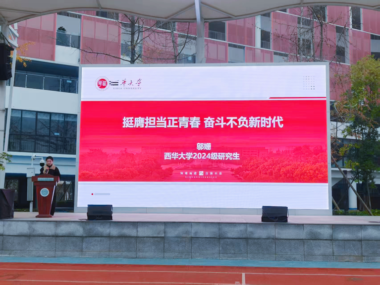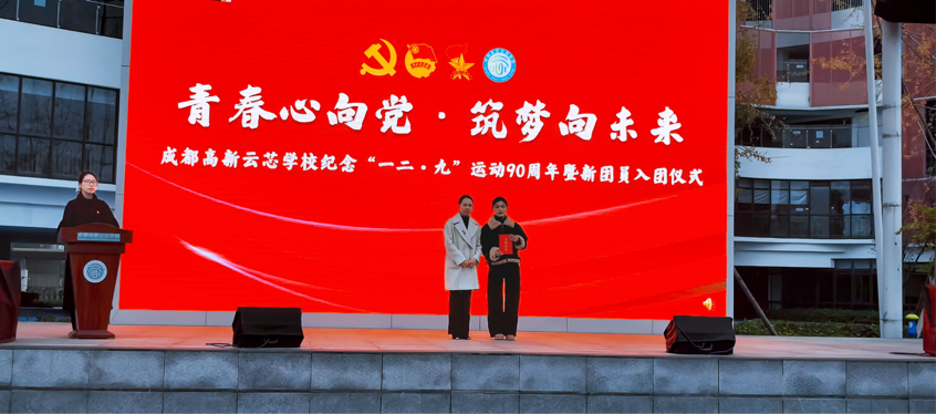 12月8日,恰逢“一二·九”运动90周年纪念日。在这个承载着深厚爱国情怀与青春担当的特殊日子里,成都高新云芯学校运动场庄严肃穆,一场庄重不失青春朝气的新团员入团仪式在此隆重举行,为冬日校园注入了炽热的信仰力量。活动当日,西华大学马克思主义学院2024级学科教学(思政)研究生邬姗受邀走进校园,以“奋进‘十五五’,青春勇担当”为题,为新团员们带来了一场别开生面、意义深远的成长教育讲堂。