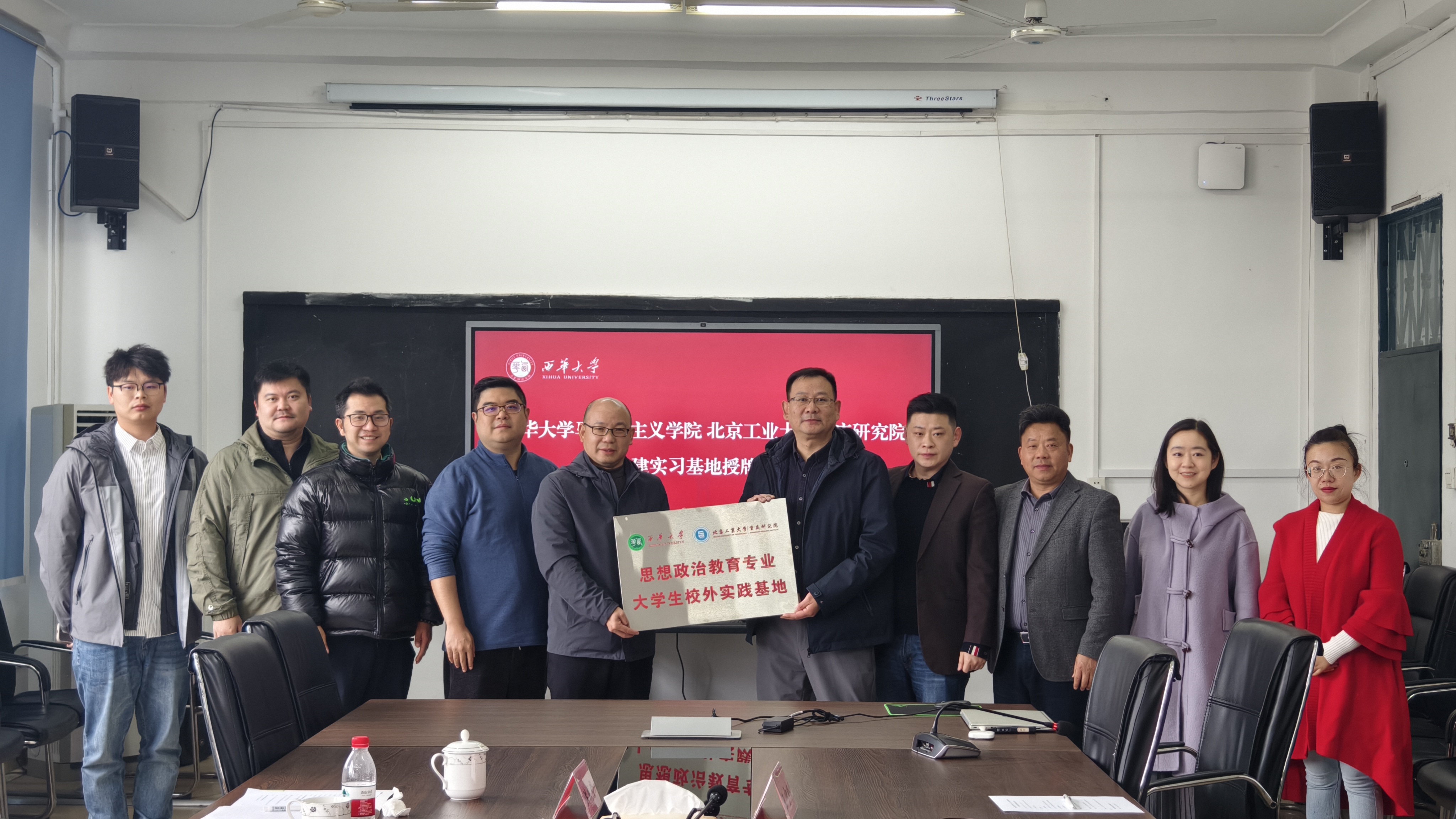 2026年3月18日上午,西华大学马克思主义学院与北京工业大学重庆研究院举行“教育科技人才一体化实践育人基地”授牌仪式。仪式由马克思主义学院副院长尹德志主持。北京工业大学重庆研究院院长彭凌云、副院长李湖海、先进制造业检验检测中心主任梁思文、创新发展中心副主任洪成望,马克思主义学院党委副书记钟灵波、教学科研办主任米娜、思想政治教育系主任何为、思想政治教育系教研室主任王雪峤参加仪式并进行交流。